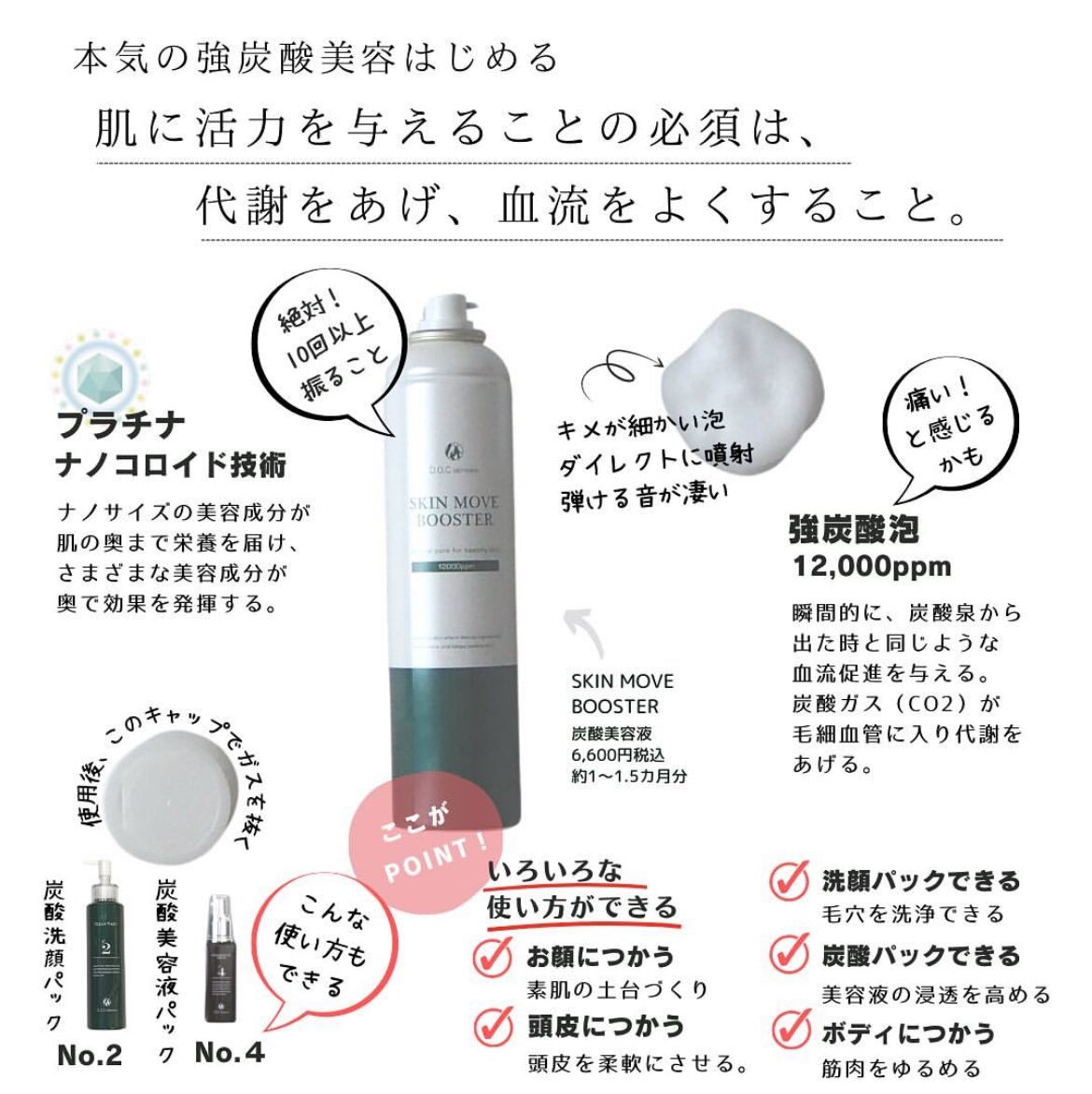 洗顔に。美容液として等色々使い方が出来る。炭酸ブースター